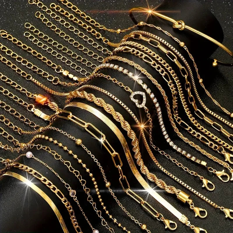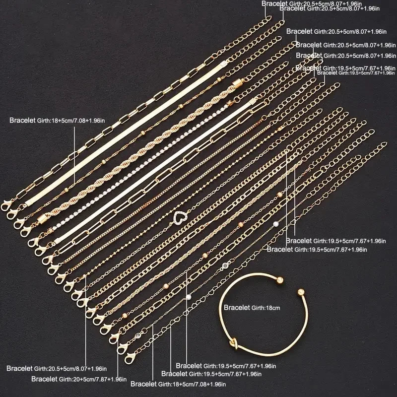 Ne choisissez plus ! Avec ce set de 19 bracelets, réinventez votre look chaque jour. Élégance, chic et polyvalence, le secret d'un style qui ne passe jamais inaperçu.